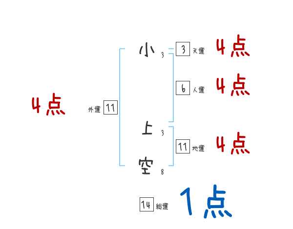 家系が持つ宿命的な運勢を表します。祖先から受け継いだ苗字ですので自分の力が及びません。家柄を象徴します。