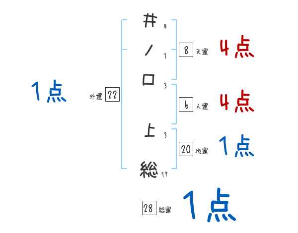総運![]() | 井ノ口上総さんの総運は28画の1つ星!家庭環境に注意。スポーツで活躍できる能力があるかも。 あなたの人生を表す1番重要な運勢です。生涯を通じて影響する総合運となり、主に50歳以降の晩年期に影響を及ぼします。 |