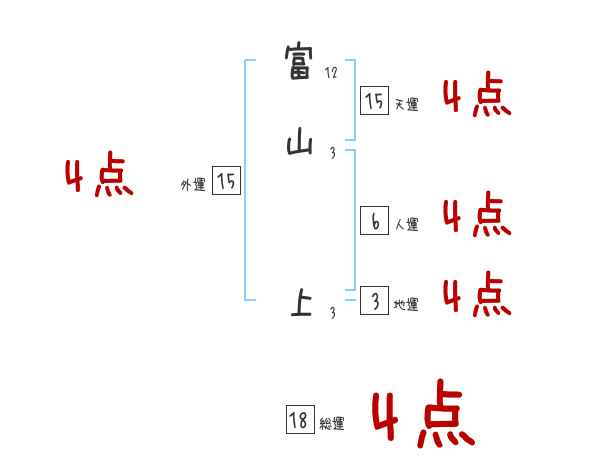 外運![]() | 富山上さんの外運は15画の4つ星!人徳があり出世する。順調に物事を進め円満な人生。 生活面を象徴する運勢です。外部から受ける影響力を表し、結婚運、家庭運や職場、環境への順応性を表します。 |