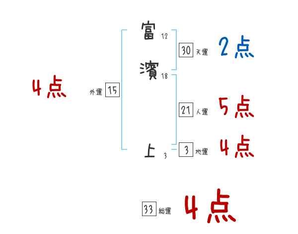 富濱上さんの画数の鑑定結果