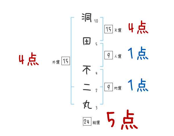 天運![]() | 洞田不二丸さんの天運は15画の4つ星!人徳があり出世する。順調に物事を進め円満な人生。 家系が持つ宿命的な運勢を表します。祖先から受け継いだ苗字ですので自分の力が及びません。家柄を象徴します。 |