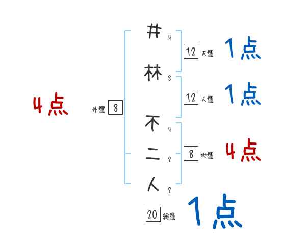 井林不二人さんの画数の鑑定結果