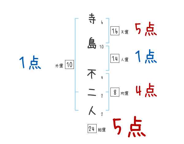 寺島不二人さんの画数の鑑定結果