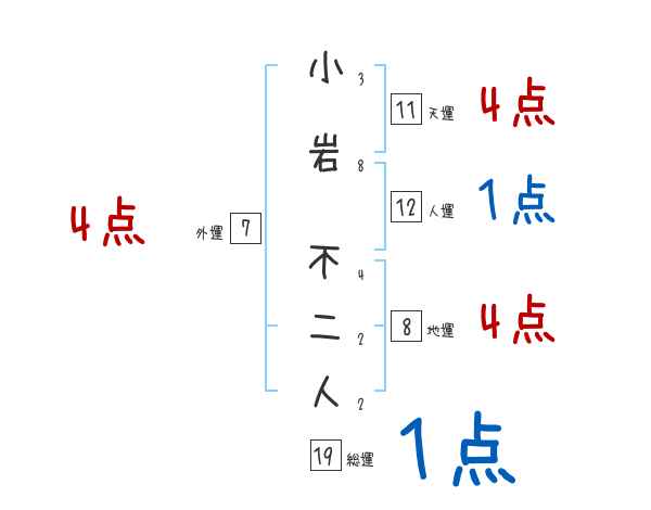 小岩不二人さんの画数の鑑定結果