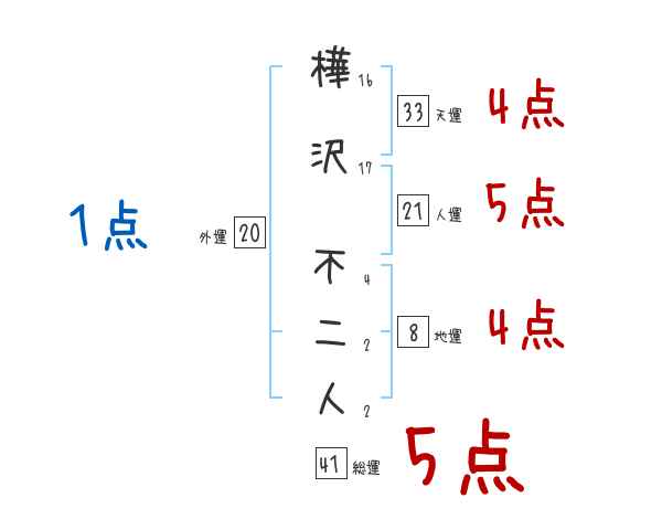 天運![]() | 樺沢不二人さんの天運は33画の4つ星!権力志向でプライドが高い。勇気があり運を切り開き成功する。 家系が持つ宿命的な運勢を表します。祖先から受け継いだ苗字ですので自分の力が及びません。家柄を象徴します。 |