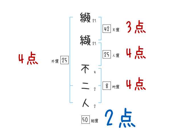 纐纈不二人さんの画数の鑑定結果