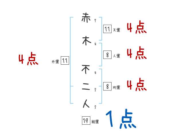 赤木不二人さんの画数の鑑定結果