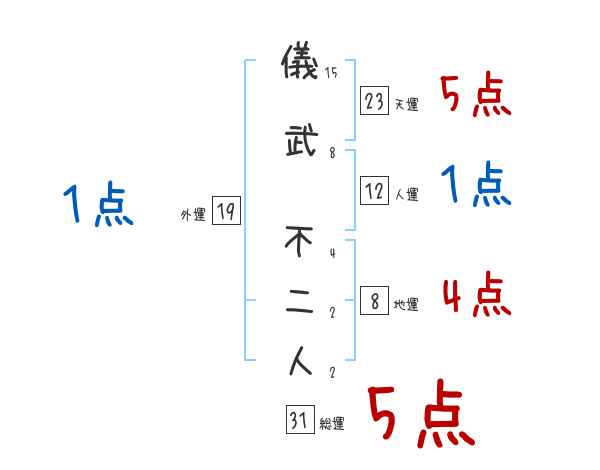 儀武不二人さんの画数の鑑定結果