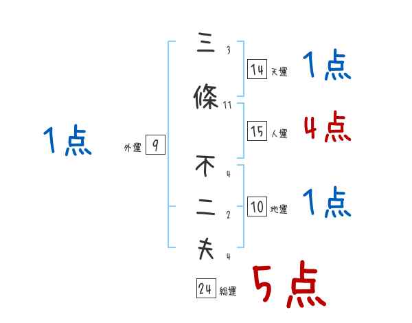 三條不二夫さんの画数の鑑定結果