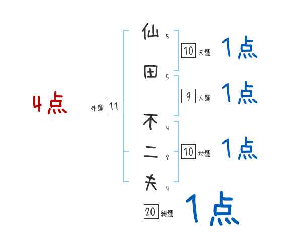 仙田不二夫さんの画数の鑑定結果