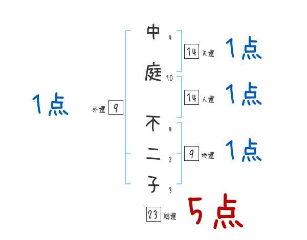中庭不二子さんの画数の鑑定結果