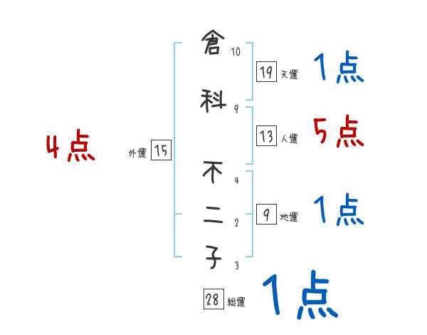 総運![]() | 倉科不二子さんの総運は28画の1つ星!家庭環境に注意。スポーツで活躍できる能力があるかも。 あなたの人生を表す1番重要な運勢です。生涯を通じて影響する総合運となり、主に50歳以降の晩年期に影響を及ぼします。 |