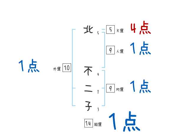 天運![]() | 北不二子さんの天運は5画の4つ星!健康で安泰。協調性に優れ、財産に恵まれる。 家系が持つ宿命的な運勢を表します。祖先から受け継いだ苗字ですので自分の力が及びません。家柄を象徴します。 |