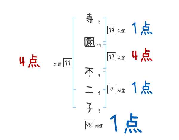 寺園不二子さんの画数の鑑定結果