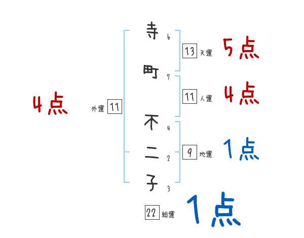 寺町不二子さんの画数の鑑定結果
