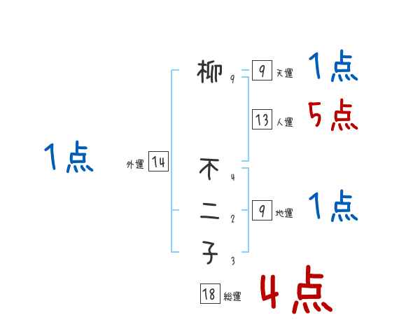 柳不二子さんの画数の鑑定結果