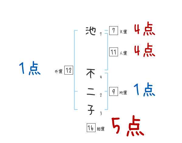 天運![]() | 池不二子さんの天運は7画の4つ星!強い意志や信念を持ち独立心が強い。自立する。 家系が持つ宿命的な運勢を表します。祖先から受け継いだ苗字ですので自分の力が及びません。家柄を象徴します。 |