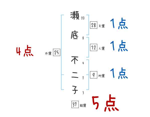 瀬底不二子さんの画数の鑑定結果
