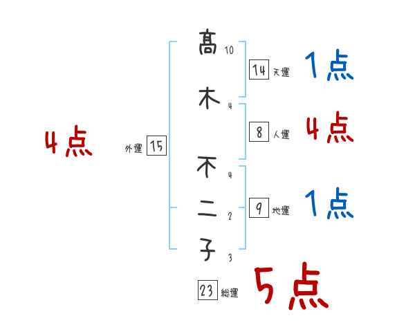 外運![]() | 髙木不二子さんの外運は15画の4つ星!人徳があり出世する。順調に物事を進め円満な人生。 生活面を象徴する運勢です。外部から受ける影響力を表し、結婚運、家庭運や職場、環境への順応性を表します。 |