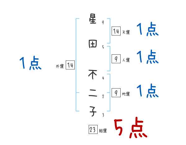 総運![]() | 星田不二子さんの総運は23画の5つ星!想像力に優れ活力がある。一代で成功し名誉を手に入れる。 あなたの人生を表す1番重要な運勢です。生涯を通じて影響する総合運となり、主に50歳以降の晩年期に影響を及ぼします。 |