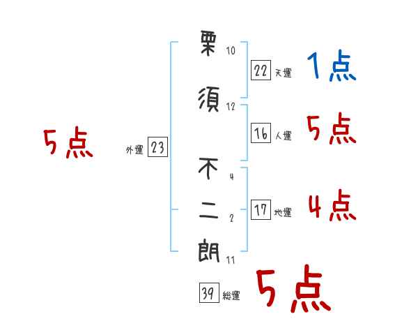 栗須不二朗さんの画数の鑑定結果