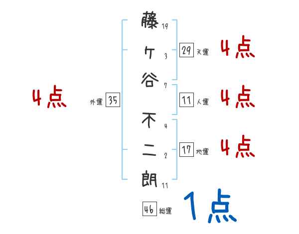 藤ヶ谷不二朗さんの画数の鑑定結果
