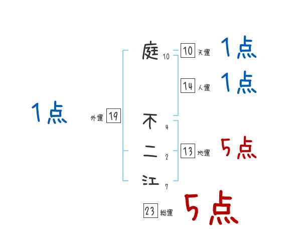 庭不二江さんの画数の鑑定結果