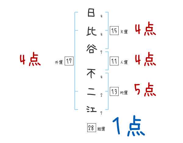 天運![]() | 日比谷不二江さんの天運は15画の4つ星!人徳があり出世する。順調に物事を進め円満な人生。 家系が持つ宿命的な運勢を表します。祖先から受け継いだ苗字ですので自分の力が及びません。家柄を象徴します。 |