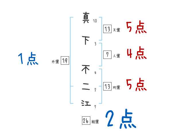 真下不二江さんの画数の鑑定結果