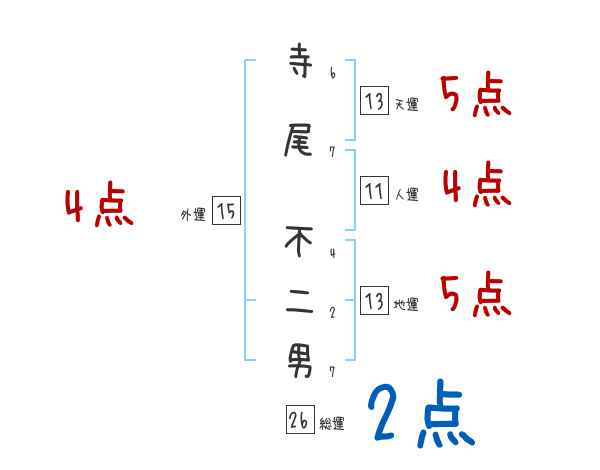 寺尾不二男さんの画数の鑑定結果