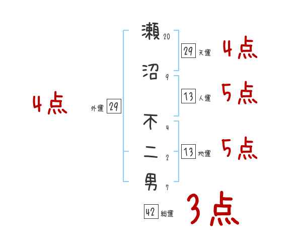 総運![]() | 瀬沼不二男さんの総運は42画の3つ星!病気に注意。多芸であるが消極的でおとなしい。 あなたの人生を表す1番重要な運勢です。生涯を通じて影響する総合運となり、主に50歳以降の晩年期に影響を及ぼします。 |
