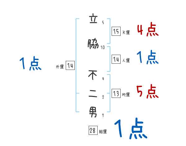 総運![]() | 立脇不二男さんの総運は28画の1つ星!家庭環境に注意。スポーツで活躍できる能力があるかも。 あなたの人生を表す1番重要な運勢です。生涯を通じて影響する総合運となり、主に50歳以降の晩年期に影響を及ぼします。 |
