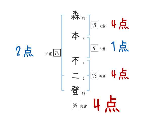 総運![]() | 森本不二登さんの総運は35画の4つ星!温厚な性格で感受性が高い。穏和な性格で人望が厚い。 あなたの人生を表す1番重要な運勢です。生涯を通じて影響する総合運となり、主に50歳以降の晩年期に影響を及ぼします。 |