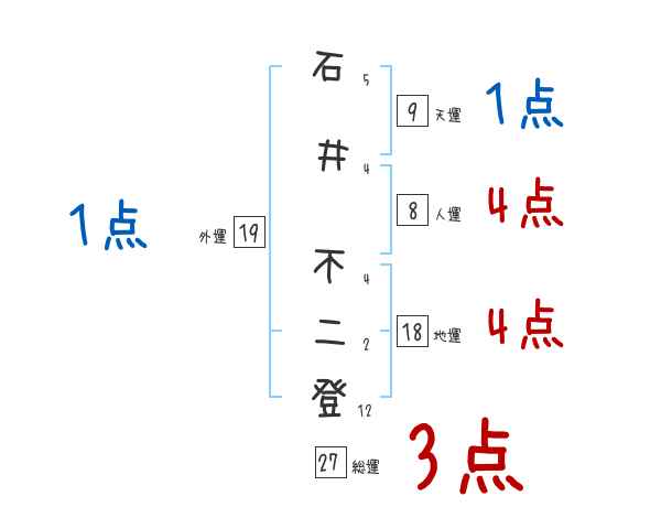 石井不二登さんの画数の鑑定結果