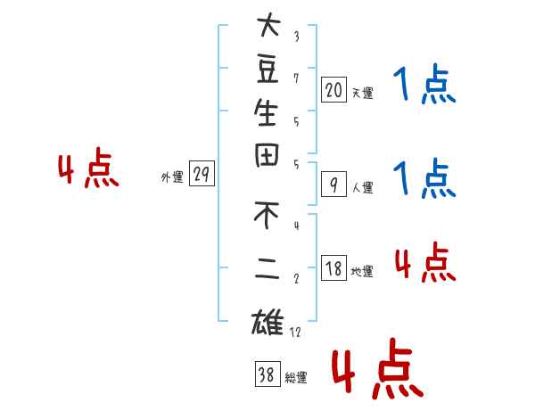 大豆生田不二雄さんの画数の鑑定結果