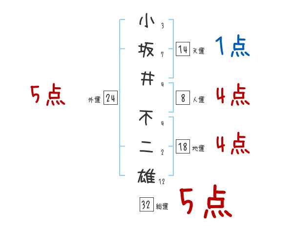 小坂井不二雄さんの画数の鑑定結果