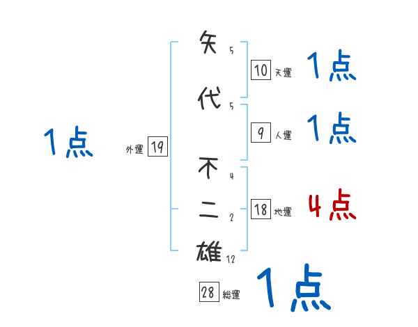総運![]() | 矢代不二雄さんの総運は28画の1つ星!家庭環境に注意。スポーツで活躍できる能力があるかも。 あなたの人生を表す1番重要な運勢です。生涯を通じて影響する総合運となり、主に50歳以降の晩年期に影響を及ぼします。 |