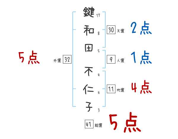 鍵和田不仁子さんの画数の鑑定結果
