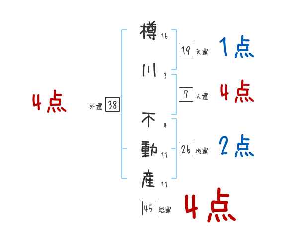 樽川不動産さんの画数の鑑定結果