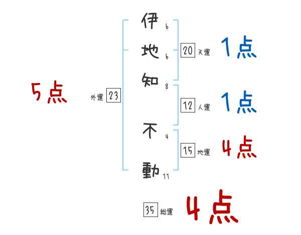 総運![]() | 伊地知不動さんの総運は35画の4つ星!温厚な性格で感受性が高い。穏和な性格で人望が厚い。 あなたの人生を表す1番重要な運勢です。生涯を通じて影響する総合運となり、主に50歳以降の晩年期に影響を及ぼします。 |