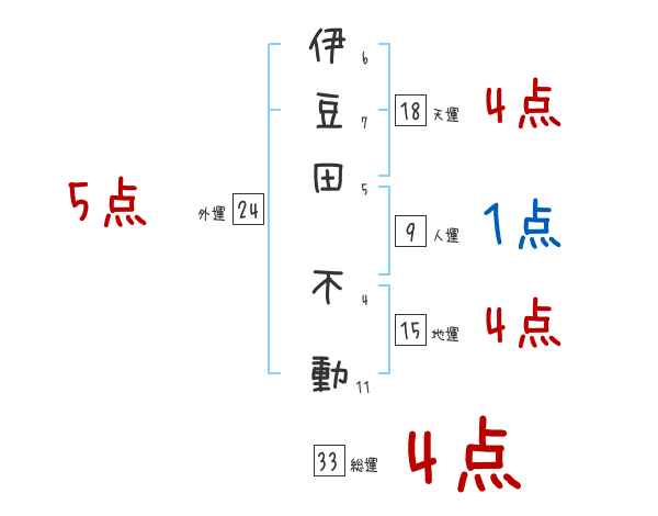 伊豆田不動さんの画数の鑑定結果