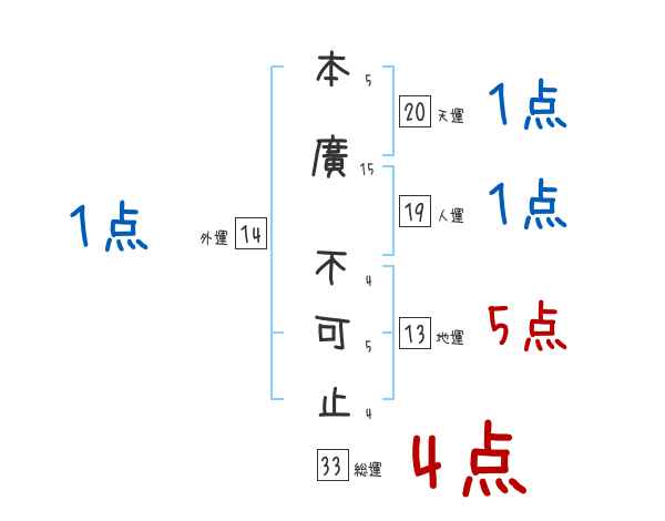 本廣不可止さんの画数の鑑定結果