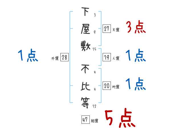 下屋敷不比等さんの画数の鑑定結果
