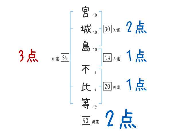 宮城島不比等さんの画数の鑑定結果