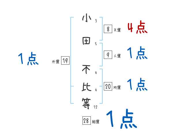 総運![]() | 小田不比等さんの総運は28画の1つ星!家庭環境に注意。スポーツで活躍できる能力があるかも。 あなたの人生を表す1番重要な運勢です。生涯を通じて影響する総合運となり、主に50歳以降の晩年期に影響を及ぼします。 |