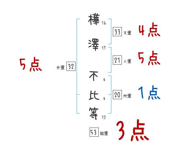 樺澤不比等さんの画数の鑑定結果