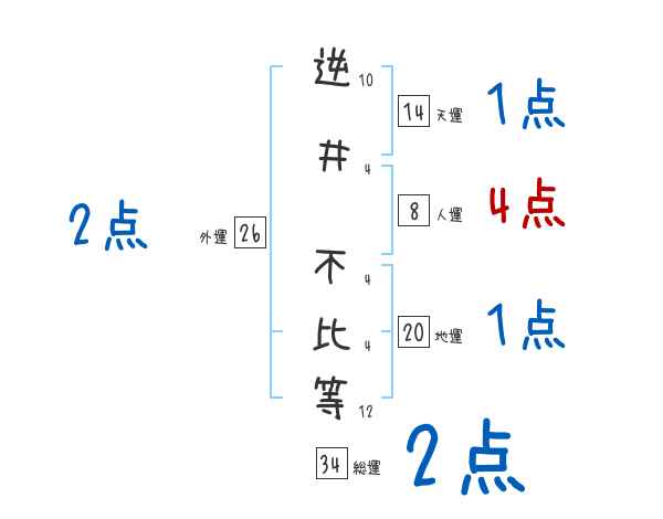 総運![]() | 逆井不比等さんの総運は34画の2つ星!独創性に優れるが、自尊心が強く災難に注意しましょう。 あなたの人生を表す1番重要な運勢です。生涯を通じて影響する総合運となり、主に50歳以降の晩年期に影響を及ぼします。 |