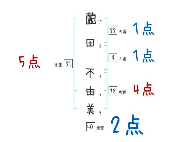 総運![]() | 薗田不由美さんの総運は40画の2つ星!自信過剰で物事に固執するためトラブルに注意。 あなたの人生を表す1番重要な運勢です。生涯を通じて影響する総合運となり、主に50歳以降の晩年期に影響を及ぼします。 |