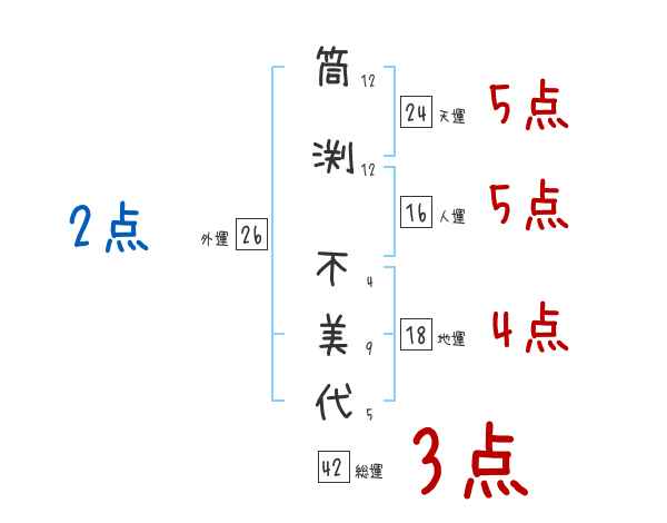 人運![]() | 筒渕不美代さんの人運は16画の5つ星!人望が厚く大きく発展する。逆転成功が見える。 性格や才能などを表す2番目に重要な運勢です。人間関係や協調性、社会的な成功に影響します。主に20歳から50歳ぐらいまでの中年期の運勢を表します。 |