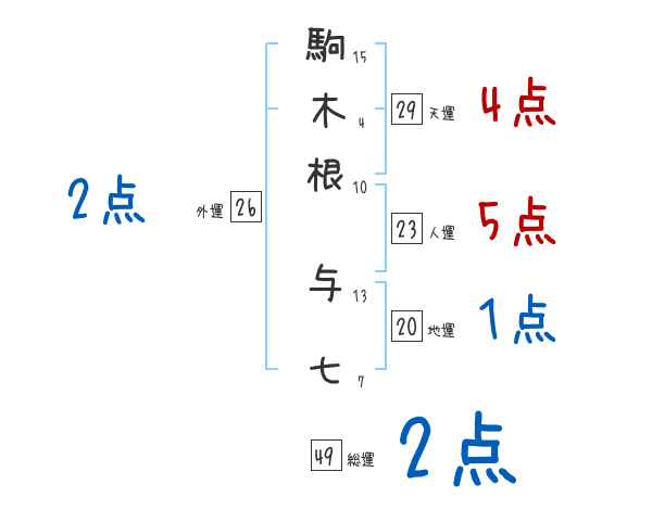 家系が持つ宿命的な運勢を表します。祖先から受け継いだ苗字ですので自分の力が及びません。家柄を象徴します。